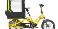 Des éléments latéraux enroulables permettent d’ouvrir et de ventiler le Tern Storm Shield. L’arrière est doté d’éléments jaunes et réfléchissants pour améliorer la visibilité par les autres usagers et donc la sécurité. Le Tern Storm Shield convient aux enfants jusqu’à 1m40.
